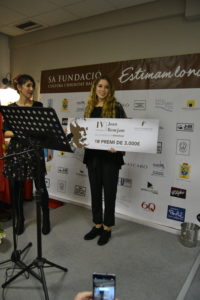 Sa jove escriptora, que destaca per sa seva creació literària en s’àmbit de sa poesia, s’ha enduit es premi gràcies a una peça que en paraules de Jaume Anglada, guanyador de s’edició anterior i representant des Jurat, defineix com un “brollador de sentiments com una tendra, rica, metafòrica i fins i tot poètica narració d’enyorança, d’amor i desamor menorquí”. “Una al·lota que viu a Barcelona, que ha romput amb s’al·lot que és a Menorca, i ho fa des d’una perspectiva força poètica que destaca inclús per damunt des relat. Es nivell gramatical com d’exposició des sentiment que hi posa s’autor és superior. Es jurat ha filat molt prim amb ses decisions preses. Es sentiment que s’autor transmet a s’obra i es domini de sa gramàtica menorquina és magnífic”.